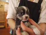 当店で一番人気のムサシパパのチワワが入店します。 今度は珍しいブルー&ホワイトのチワワの♂です。(♀決まっちゃいました) 毎回超可愛いbabyを出してくれるので、今回も期待大です!! 写真UPします。 この子達はブラックタンホワイトの♂と♀になります。 入店は週末です。