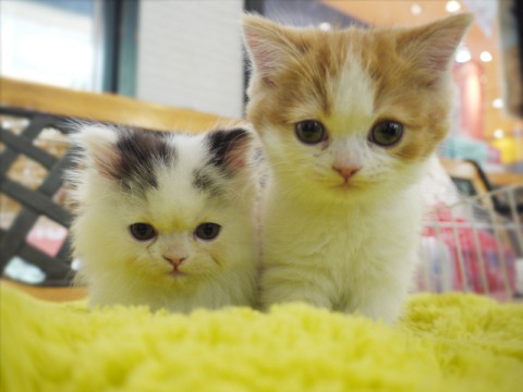 なーんと! スコティッシュフォールドを1頭60000円にてご案内~(ワクチン代別途) ■写真左:男の子/ブラック&ホワイト ■写真右:女の子/レッドダビー どちらも12月5日生まれの兄弟です。 とーってもかわいい子ですので、ぜひ会いに来て下さいネ!!