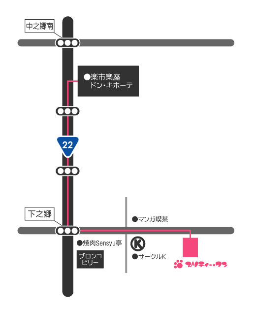 2011.07 Renewal Open! 平素より、当店をご利用いただき誠にありがとうございます。 2011年7月15日より、 プリティーワンは移転いたしますのでご案内申し上げます。 今後も、これまで以上のサービス向上を目指していきますので 変わらぬご愛顧のほど、宜しくお願い申し上げます。 7月15日グランドオープン 新住所:愛知県清須市春日中沼61