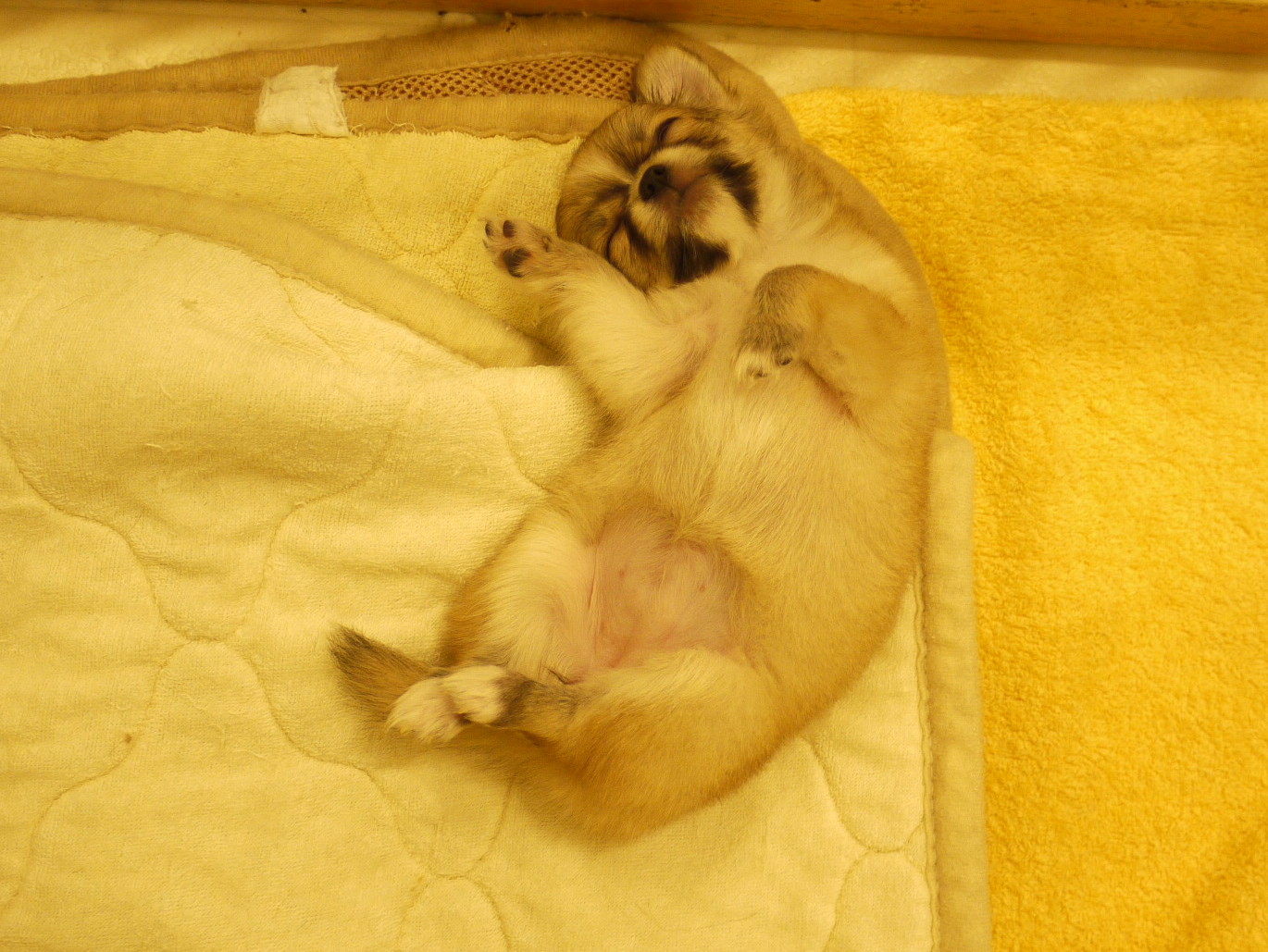 カラーは優しい色味のフォーン&ホワイトでお顔の黒いのは大人になると消えちゃいます。