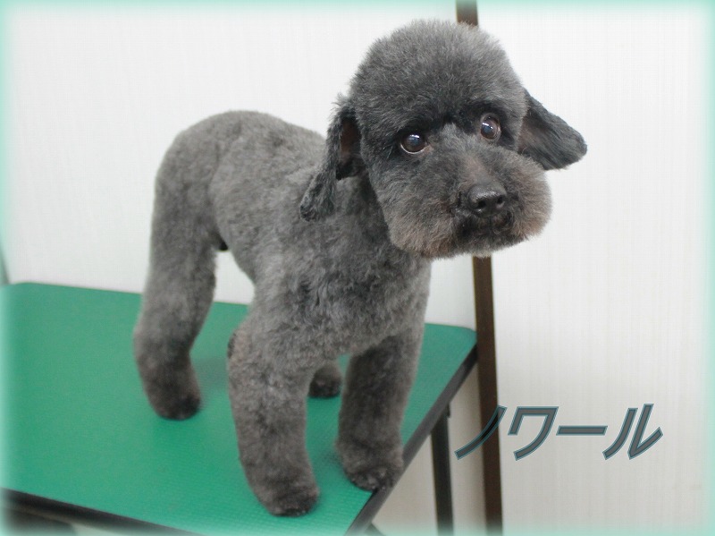 愛知県清須市、北名古屋市、名古屋市西区、稲沢市周辺で トリミングサロン・ペットホテルをお探しならプリティーワン 今日初来店のノワールくんです 耳にはバリカンをかけ、お顔はシュナウザー風のベアカットにしました とってもよく似合ってます プードルは色んなアレンジができて楽しいですね