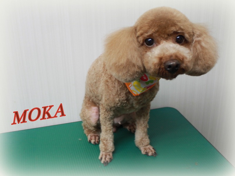 愛知県清須・西区・北名古屋市周辺でトイプードルのトリミングはプリティーワン 体3ミリのバリカンで丸刈り 足先1ミリバリカン仕上げ 耳は短く丸く、頭は低くカットしてあります ゼオライト歯磨きで口臭・歯石ケアも 歯石がつく前に予防歯磨きをするのも大事ですね モカちゃん おつかれさま~