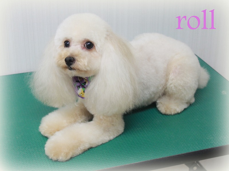 愛知県清須・西区・北名古屋市周辺でトイプードルのトリミングはプリティーワン トイプードルのロールちゃん 体8ミリのバリカン、足短く、しっぽ丸 耳2センチ丸くカット、お顔ベア とても人懐っこい性格でしっぽブンブン トリミングもおりこうさんです ロールちゃん おつかれさま~