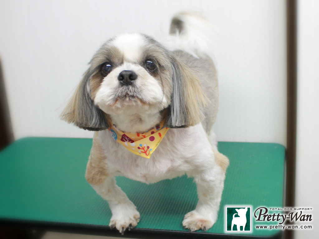 愛知県清須・西区・北名古屋市周辺でシーズーのトリミングはプリティーワン シーズーのトッポちゃんとマロンちゃん 今回もまつ毛残し、3ミリ全体、ライオン尾、お顔スッキリ 耳短丸く、尾先端少しカットです マロンちゃん前回より痩せててびっくり トッポちゃんはもう少しかな~笑 いつもありがとうございます