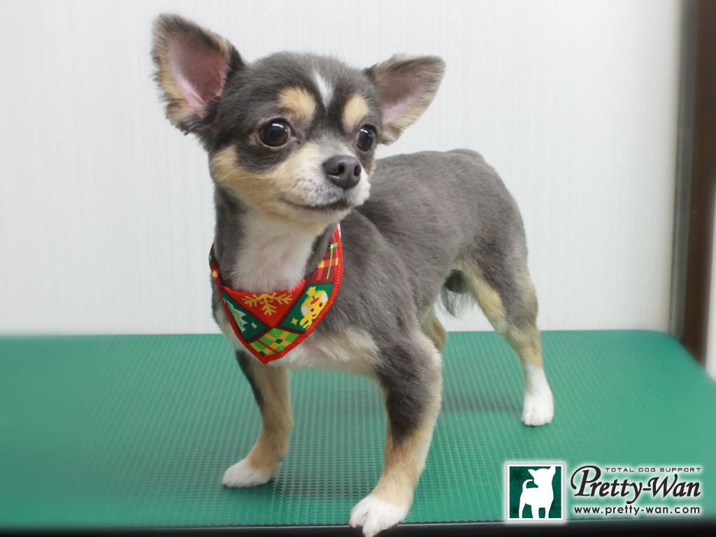 愛知県清須・西区・北名古屋市周辺でチワワのトリミングはプリティーワン チワワのレオちゃん、うなぎちゃん 3ミリのバリカンで丸刈り、しっぽ3ミリ、 耳は形に合わせてカット うなぎちゃんは最初の頃に比べたら 落ち着いてカットをやらせてくれるようになりました ふたりとも頑張ってくれて ありがと~