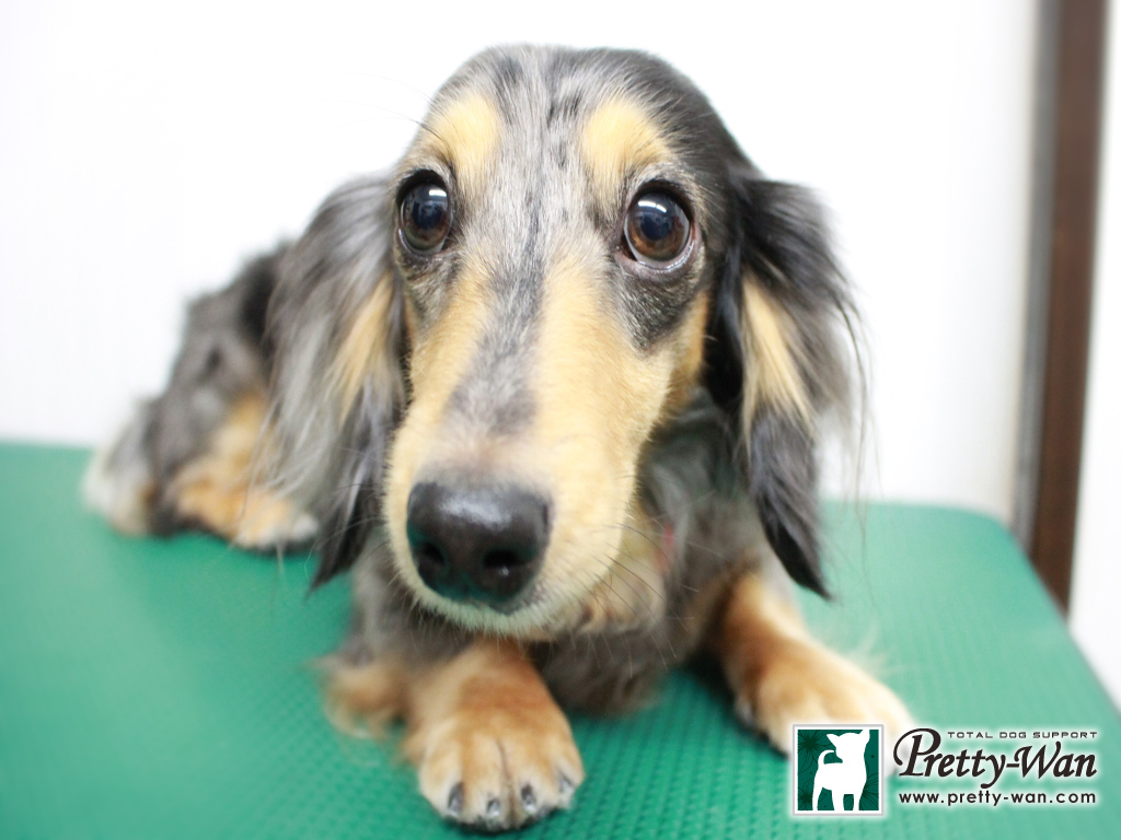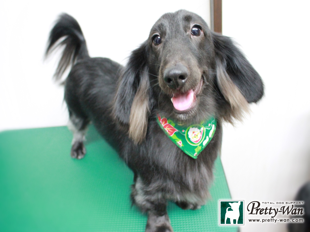 愛知県清須・西区・北名古屋市周辺でMダックスのトリミングはプリティーワン Mダックスのチョコちゃんとクロちゃん シルバーダップルとブラックのとても珍しくカッコいいコンビ いつも素敵なオーナー様とご来店してくれます 今日もシャンプーをしてサッパリ 綺麗な毛並みに磨きがかかったね いつもありがとうございます