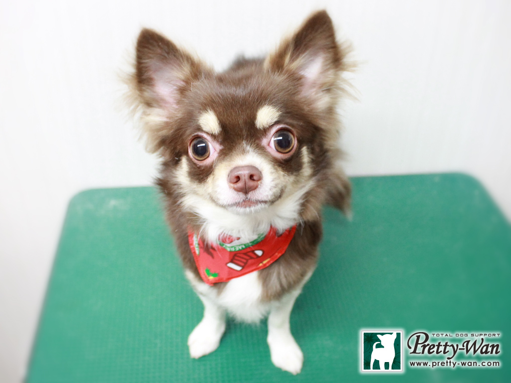愛知県清須・西区・北名古屋市周辺でチワワのトリミングはプリティーワン チワワのパンちゃんがご来店 三度目のご来店ありがとうございます 今日はシャンプーコース 冬に向けてふわふわな毛になってるね 1年の汚れを洗い流し、綺麗になりました パンちゃんまたきてね