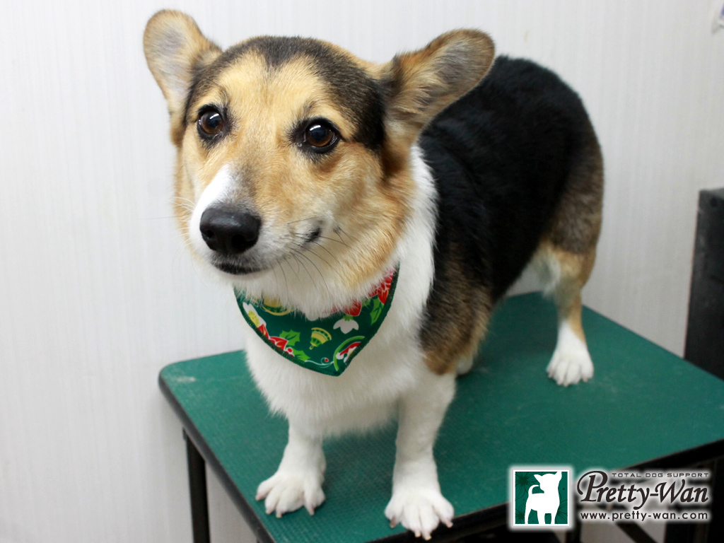 愛知県清須・西区・北名古屋市周辺でコーギーのトリミングはプリティーワン コーギーのトラちゃん シャンプーコースとお尻のカットをしました 爪切りが苦手だけど今年ラスト!頑張ってくれました トラちゃん おつかれさま
