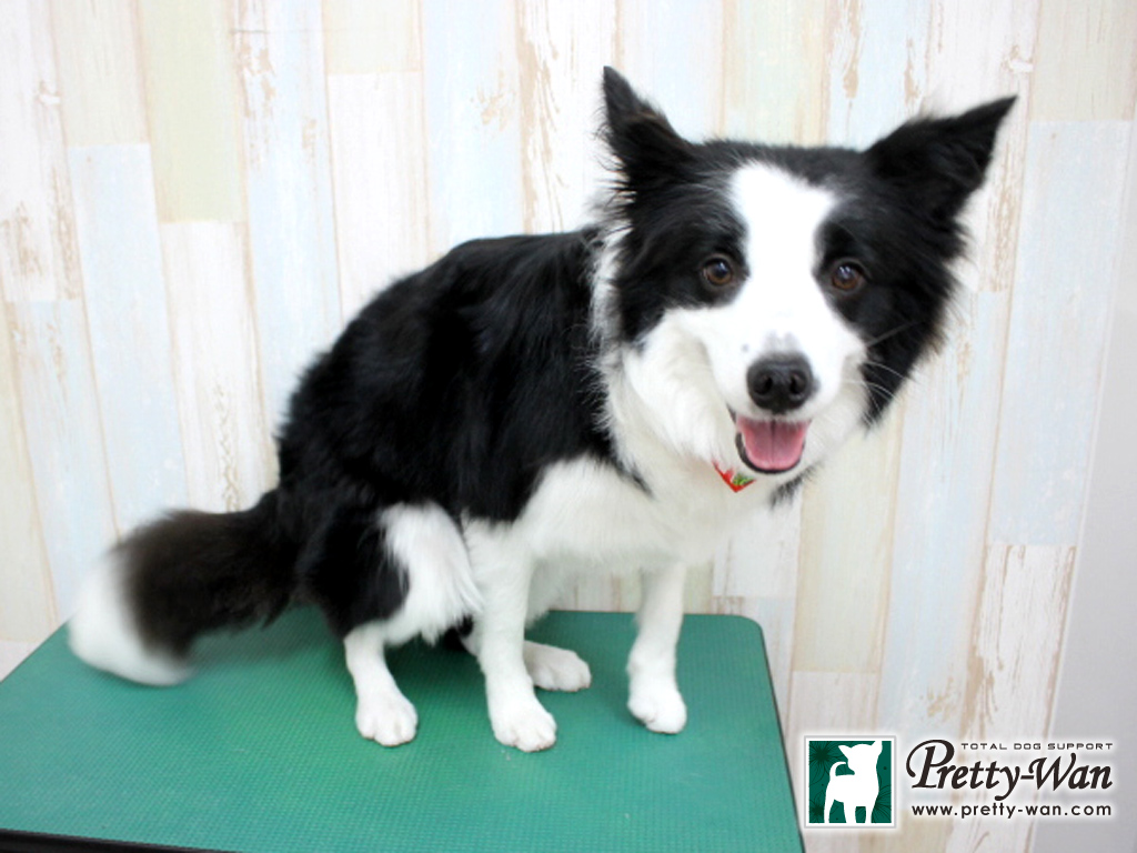 ボーダーコリーのアルちゃん 今日はカットコースでのご来店です 飾り毛短くカット、尾バランス、耳そろえ、お尻スッキリ サッパリさわやかな印象になりました 今年も1年よろしくお願いします ありがとうございました 愛知県清須・西区・北名古屋市周辺でボーダーコリーのトリミングはプリティーワンへ