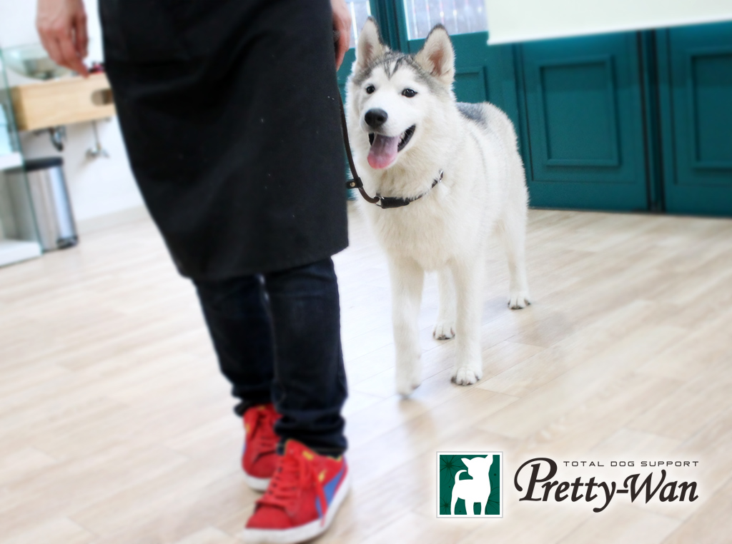 スタッフの隣に寄り添い大人しく待つことができてGOOD!