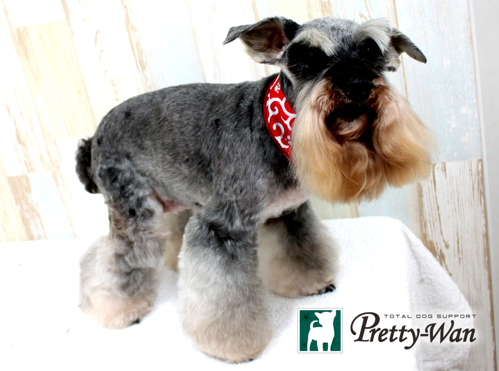 全て1ミリバリカン使用のシュナウザーカットです ヒゲは残してシュナウザーらしく 足はブーツカットでふんわり ありがとうございました 愛知県清須・西区・北名古屋市周辺でMシュナウザーのトリミングはプリティーワンへ