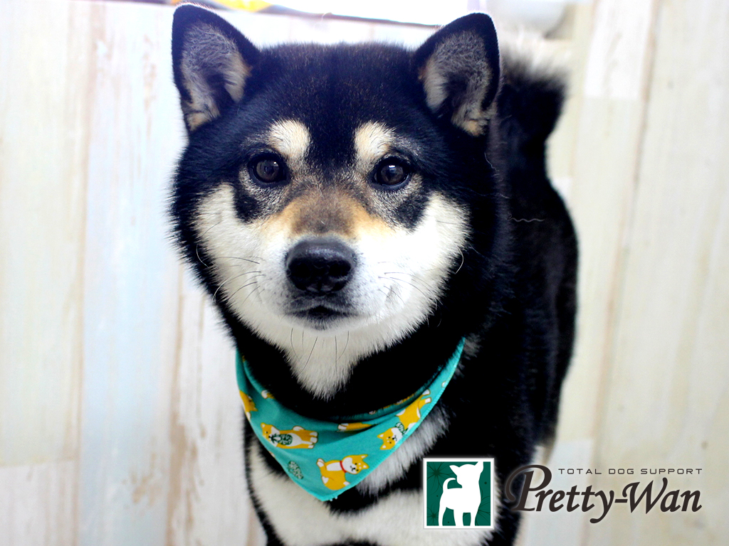 今日は新しく入った柴犬のバンダナをつけてみました