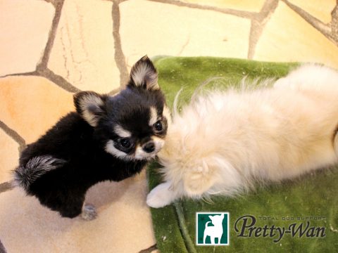 プチちゃんと仲良しのスムースチワワとうふちゃん。
