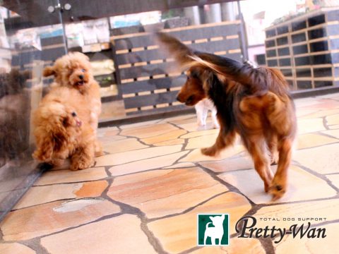 犬同士コミュニケーションを積極的に取らせています。