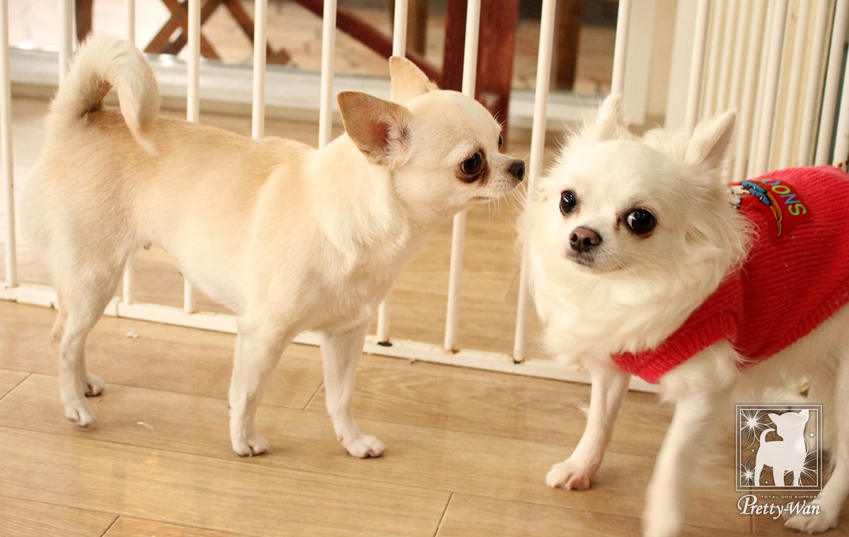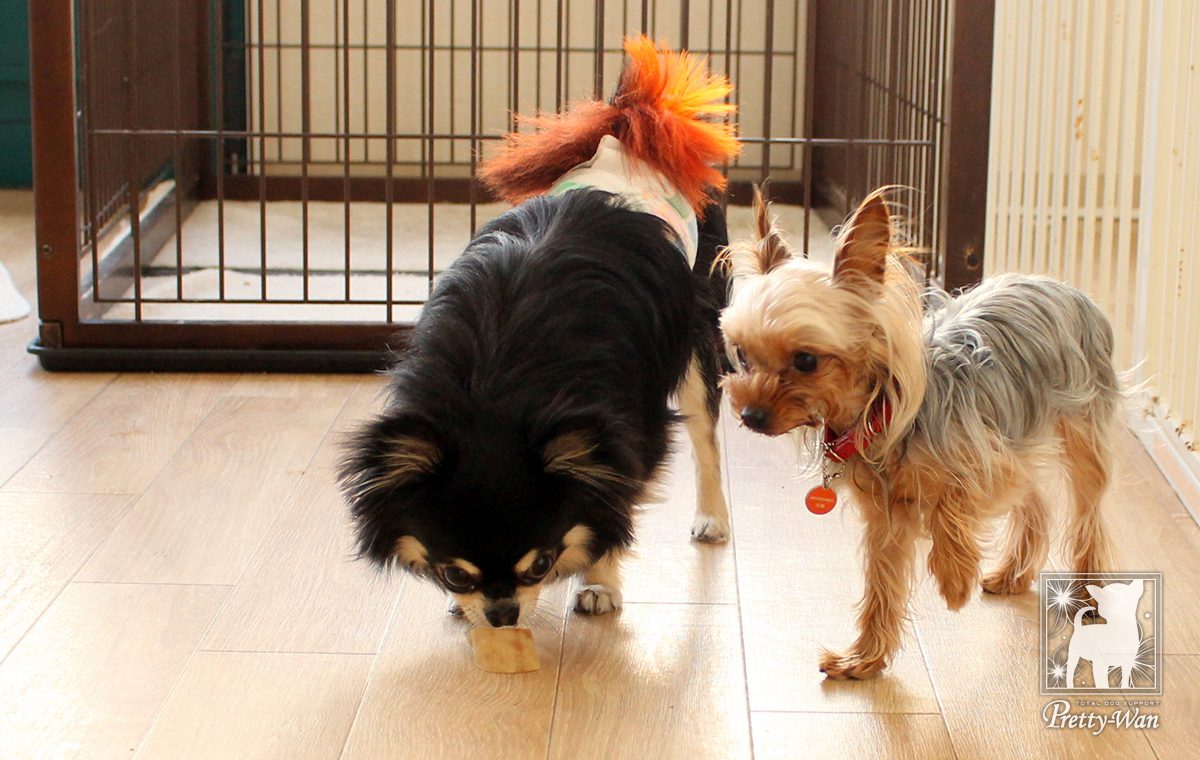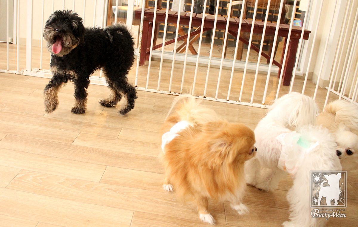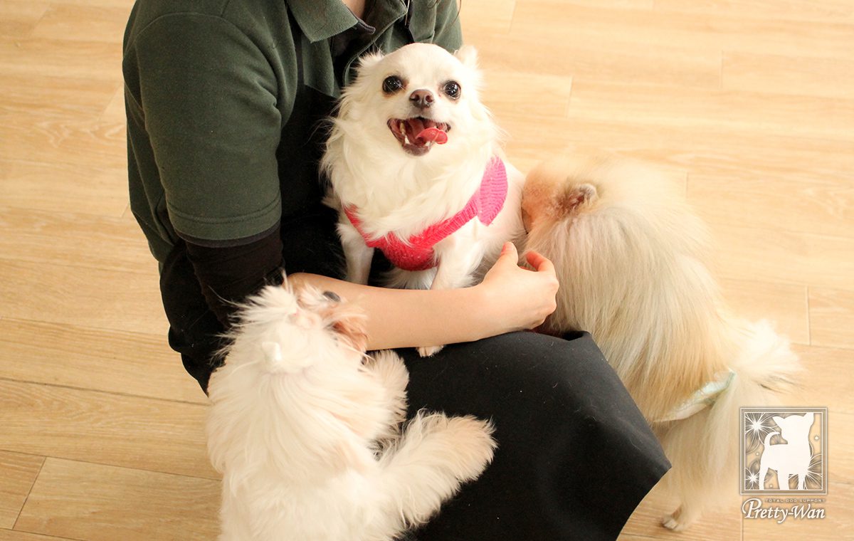 犬同士コミュニケーションを取ったり、来店されたお客様に触ってもらうことで