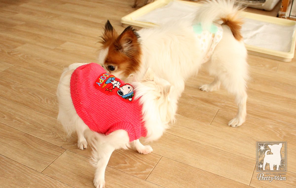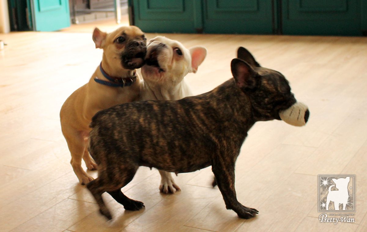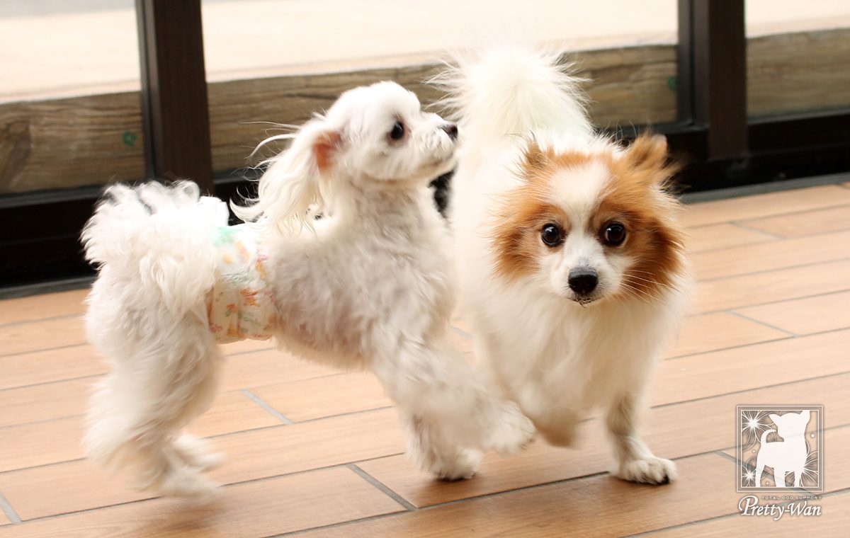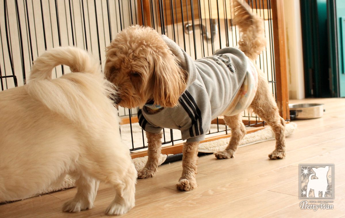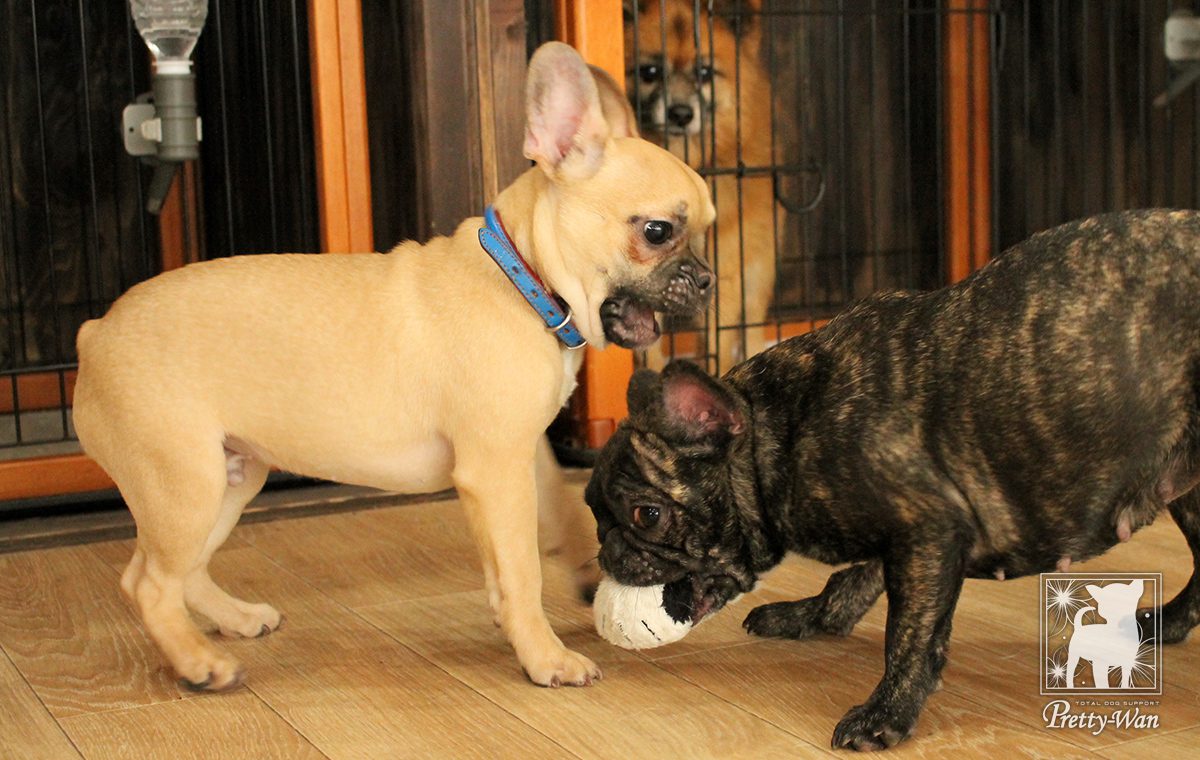 犬同士コミュニケーションを取ったり、来店されたお客様に触ってもらうことで