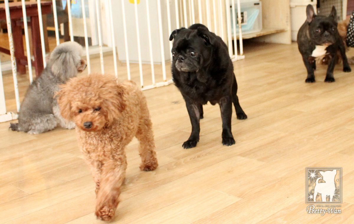 今週末お泊りに来てくれたわんちゃんを紹介します。 仔犬も小さなうちから社会化のトレーニングを兼ねてお泊りに来てくれます。 日中はプレイルームでお店の仔犬たちと一緒に過ごしました。 今週のドッグホテルもみんな楽しそうにしていました(*^^)v