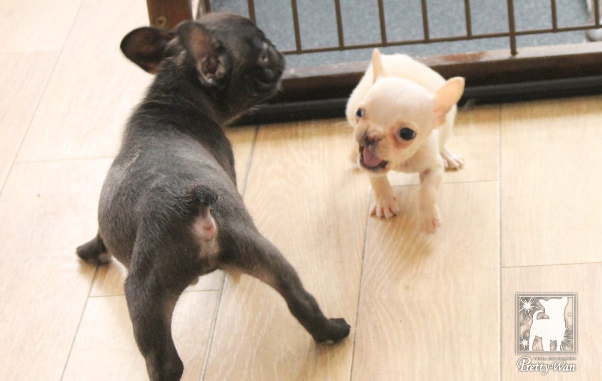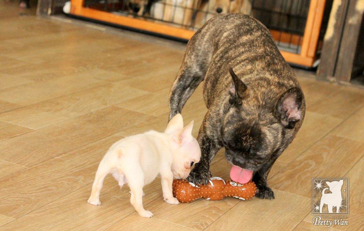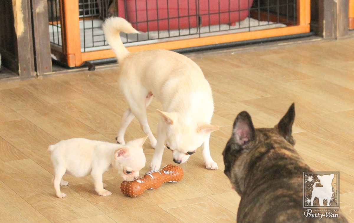 兄妹同士や先輩と遊ぶことによって、犬同士のコミュニケーションの取り方を身に付けていきます。