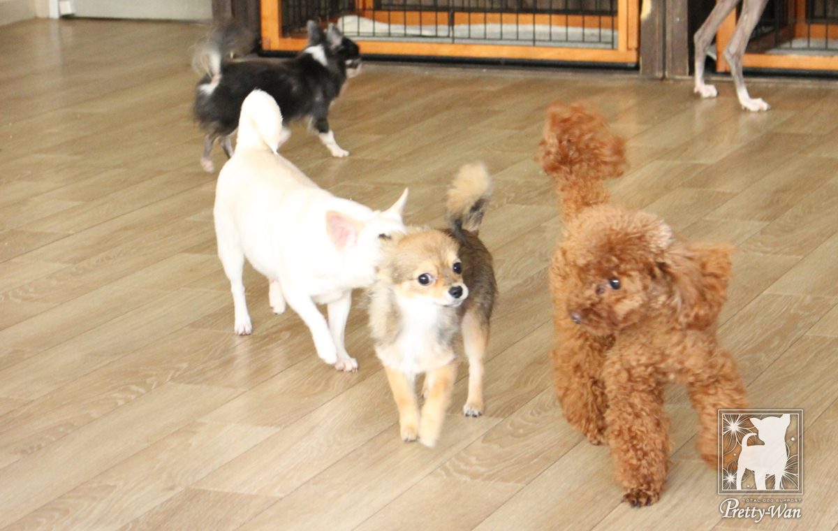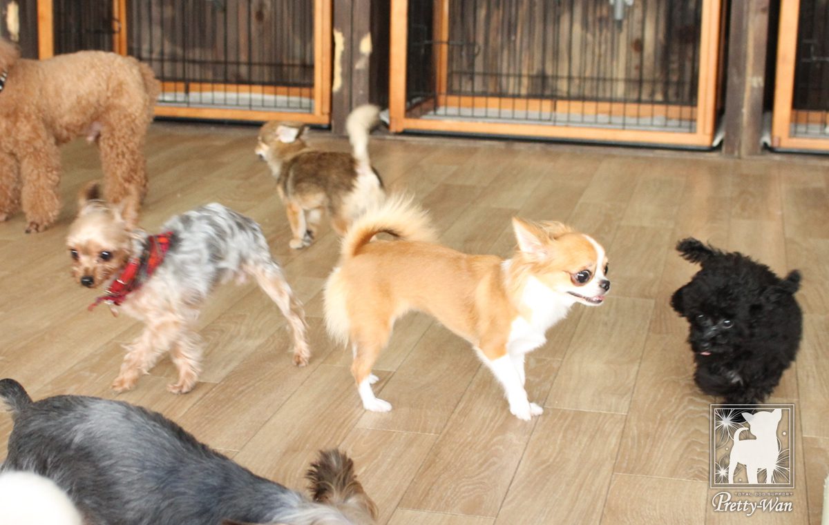 プリティー・ワンのホテルでは、日帰りで遊びに来てくれるわんちゃんがたくさんいました!