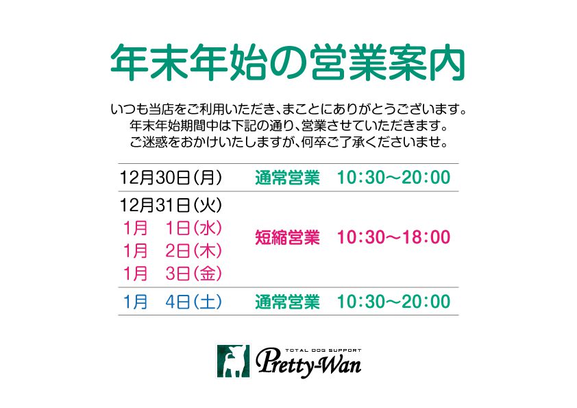 清須本店 年末年始営業時間のおしらせです。